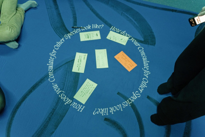The Consulate for Other Species is a participatory installation exploring how other beings might be included, represented, and granted agency within our social systems. Developed during the Das Konsulat residency, the project is grounded in co-creation: over 36 participants from Stuttgart aged 16-40 contributed ideas, stories, and visions through collaborative workshops.