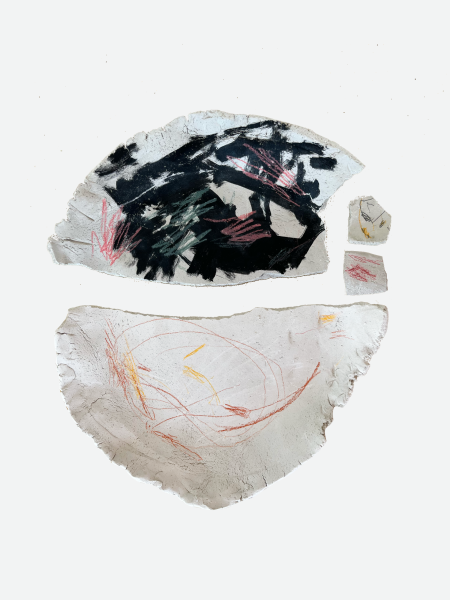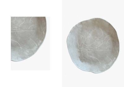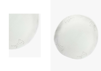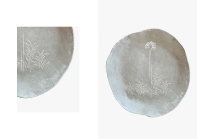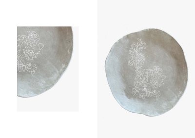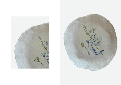 The embroidered plates with floral patterns explore the relationships between materials, craft, decoration and use.